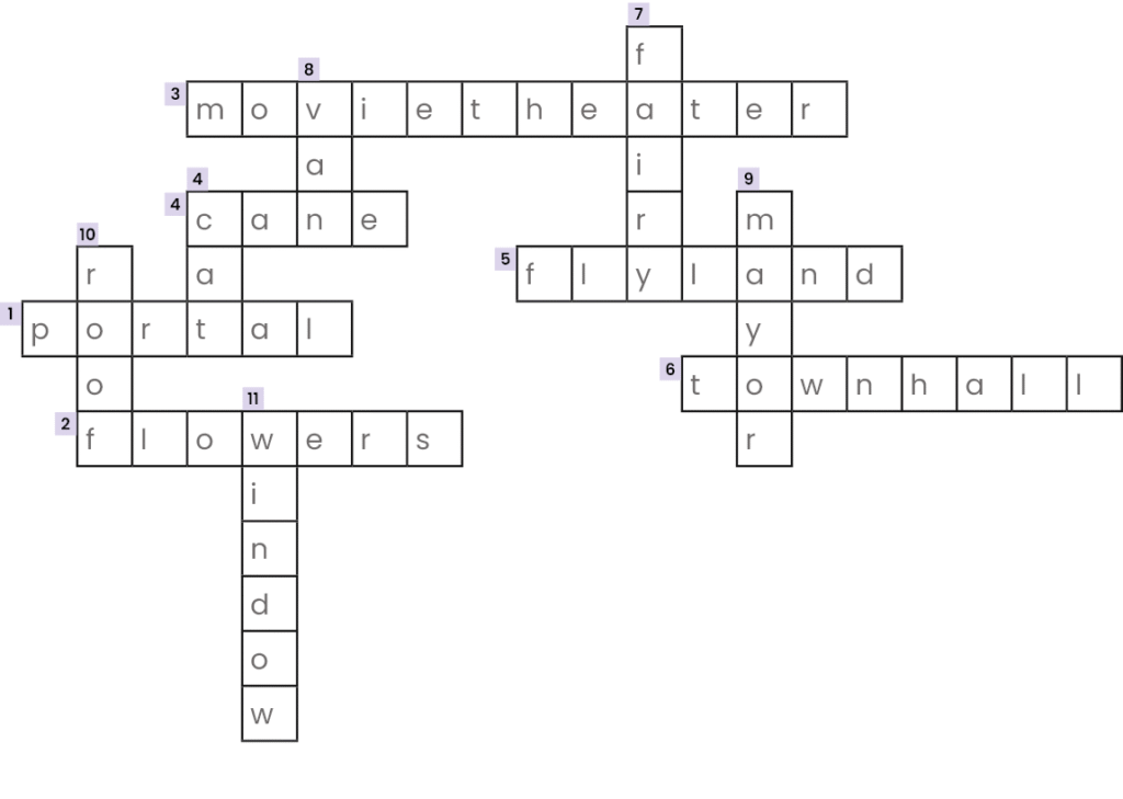 | 8 | A purple vehicle that serves as a gateway to another world. _ _ _ |